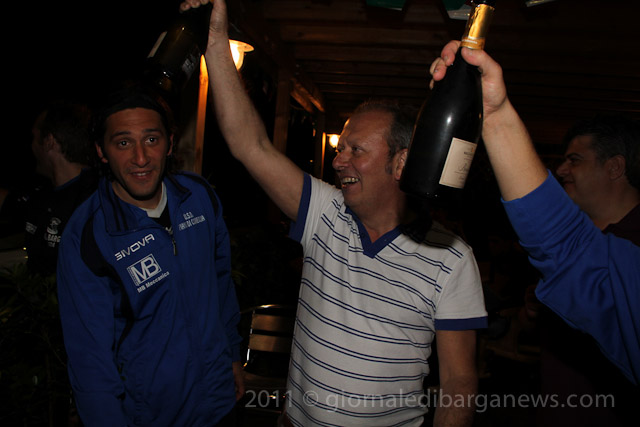 At midnight this evening the Trattoria Da Riccardo was shut up and in complete darkness and the Bar del Paolo Gas was in complete festa mode with champagne corks popping and loud speeches being made …. yes, the winner of the Cancellone 2011 was – Bar del Paolo Gas.