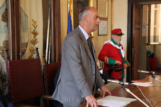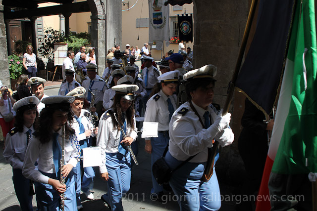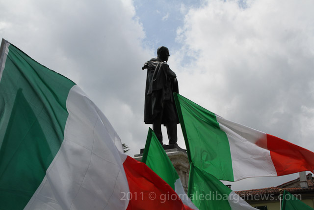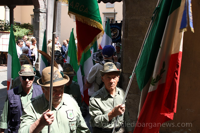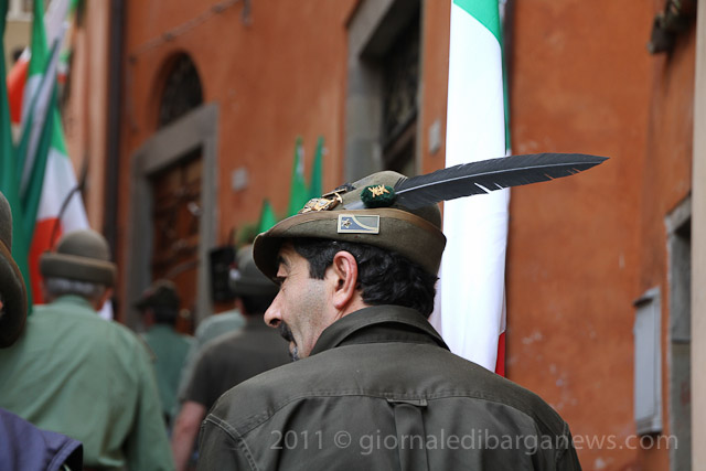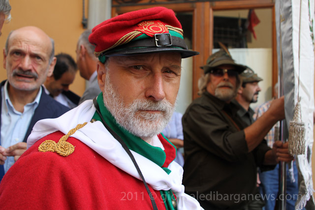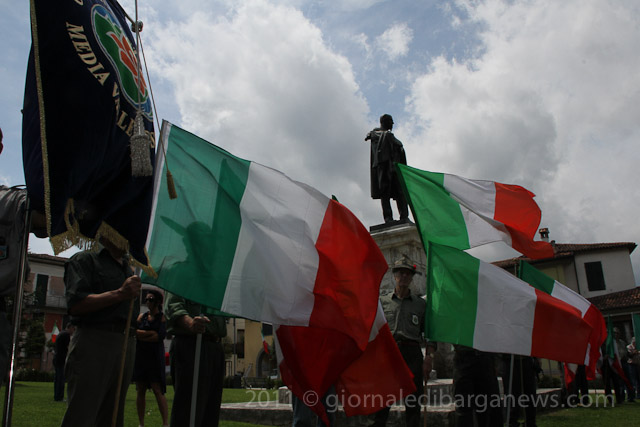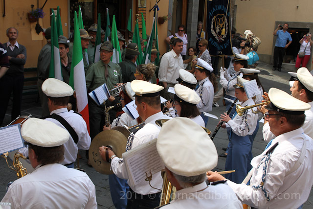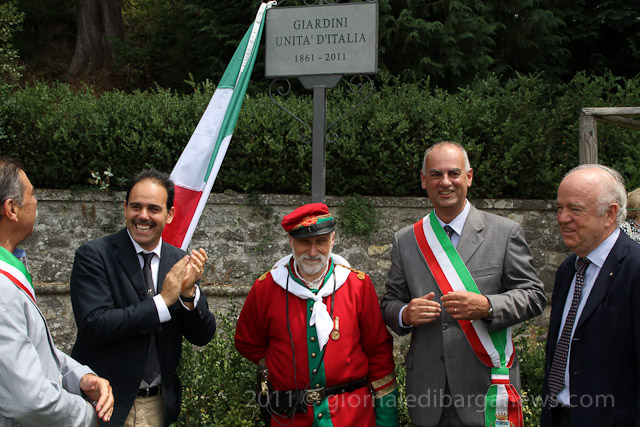 This morning in Barga there were flags, marching band and speeches as the completed renovation of the Mordini statue was unveiled to the public on the Fosso – now renamed for the event, the Giardini del Bastione del Fosso all l’unita d’Italia