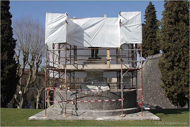 Since the beginning of the year there have been a series technicians working on renovating three of the statues closely connected with those events of 150 years ago. They have been cleaning and repairing some of the damage that time and pollution has done to the statues of Antonio Mordini on the Fosso, Giuseppe Garibaldi in Piazza Garibaldi in Barga Vecchia and Pietro Tallinucci outside the hospital.