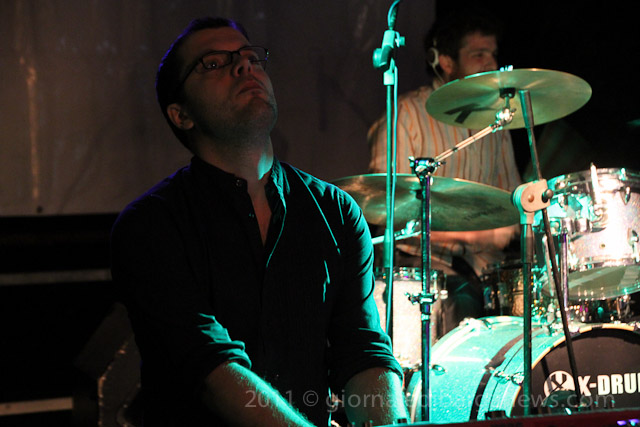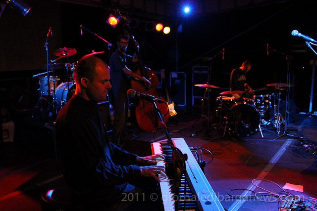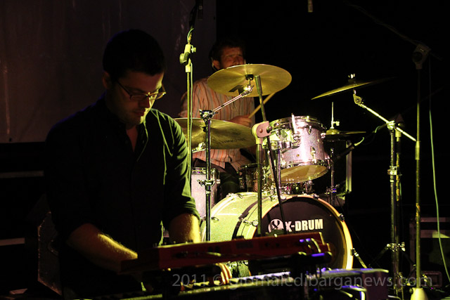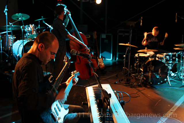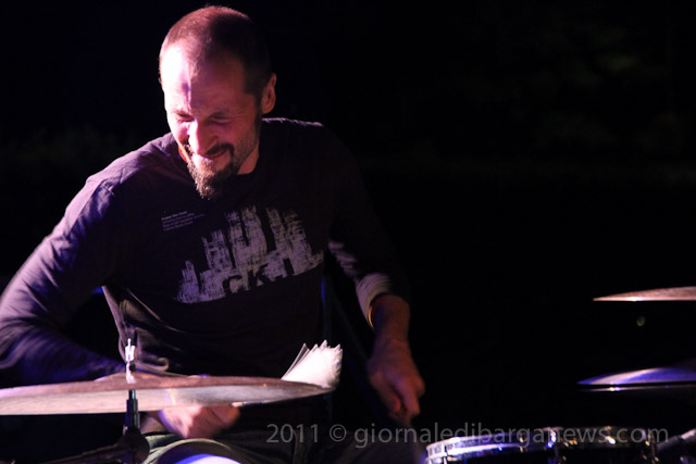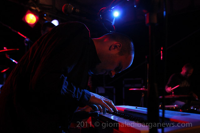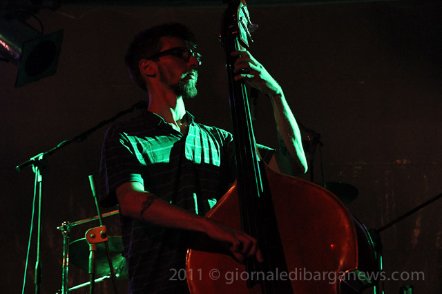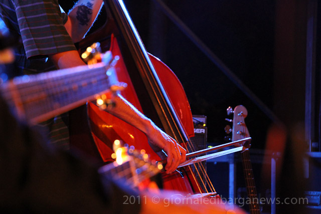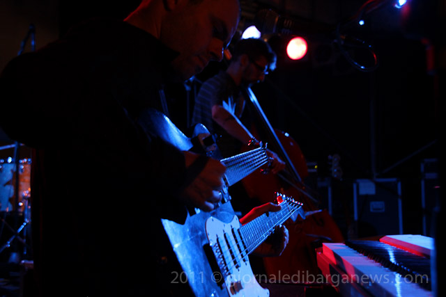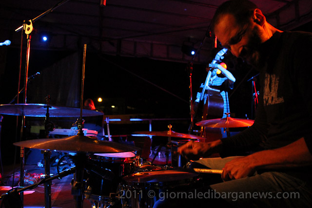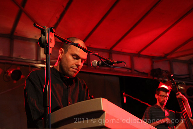 Il tutto proposto da due musicisti di ampio spessore, Saverio Lanza pianoforte, chitarra , voce; Fabrizio Morganti: batteria, percussioni e con loro un altrettanto in gambissima Piero Spitilli : contrabbasso, basso elettrico. Il loro concerto è stato senza dubbio, musicalmente parlando, il momento forse migliore di questa edizione de “Il pane e le rose” e la loro musica ci avrebbe tenuti – se non avessimo dovuto correre in redazione a scrivere questo pezzo per parlarvi di loro quanto prima – incollati sulle panche del festival ad ascoltarli fino all’ultimo minuto.