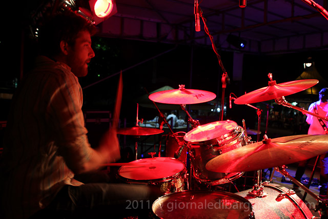 Prima di loro sul palco di Gallicano la band Silenzio è sexy, una formazione di “sola musica italiana” e soprattutto di musica d’autore che ci ha dimostrato quanto creatività musicale ci sia ancora nella nostra musica. Il gruppo ha presentato il loro EP “Sorridi” con una serie di brani scritti perlopiù dalla voce del gruppo Marco Carnesecchi e con una bella versione di Maledette Madrelingue di Ivan Graziani. Anche la loro, indubbiamente, una bella prova. Bravi.