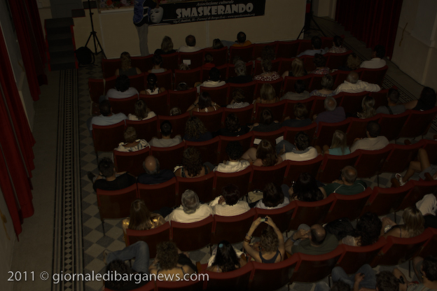 Quando la serata sembrava volgere al termine, dopo aver proiettato anche il divertente backstage del clip, girato avvenuta tra la sede dell’associazione, il Caffè Centrale e la discoteca Skylab, la musica è partita di nuovo e… sorpresa, il teatro è stato invaso dalle girls e dai boys di Smaskerando che hanno eseguito live la travolgente coreografia utilizzata per il video clip.