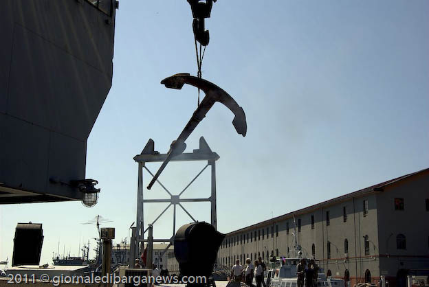 I primi contatti per realizzare questo evento sono nati grazie al medico militare Roberto Lombardi che visita a Fornaci presso la sede dell’Aci di Alessandro Marchi, poi le operazioni hanno coinvolto la Marina Militare di La Spezia e la nostra amministrazione comunale che provvederà a sistemare l’ancora presso la rotonda del PIP Chitarrino, dove, rimossa quella già esistente, più piccola, verrà creato un piedistallo che possa ospitare questo grande cimelio di quattro metri per quattro.