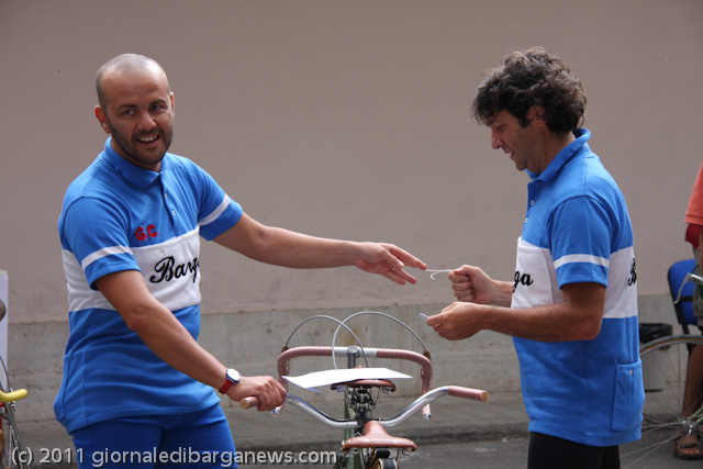 Organizzata dal Gruppo Ciclistico Barga insieme a Cicli Vellutini di Fornaci la manifestazione ha richiamato anche quest’anno tanti appassionati del ciclismo di una volta che hanno preso parte (quasi la metà) con abbigliamento e bici d’epoca, alcune delle quali anche risalenti alla prima metà del secolo scorso come la splendida Peugeot del 1906 condotta da Maurizio Cacciati, che peraltro risulta tra i primi nella classifica provvisoria del Giro stesso. Tra i partenti, per loro ormai un appuntamento irrinunciabile, il duo in tandem Barsotti-Conti del GC Barga che ha coraggiosamente preso parte, con un tandem fatto in casa. al percorslo di 60 km. I percorsi sono stati in tutto tre, il breve di 30 km di cui nelle immagini vedete anche l’arrivo dei primi partecipanti, il medio di 60 ed il lungo di ben 90 km che si è addentrato fino nella profonda Garfagnana toccando Careggine ed Isola Santa valevole per la maratona ed al quale ha preso parte anche la bici storica di cui parliamo sopra.
