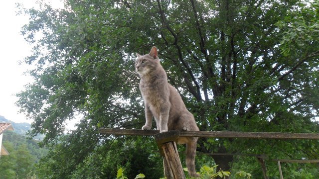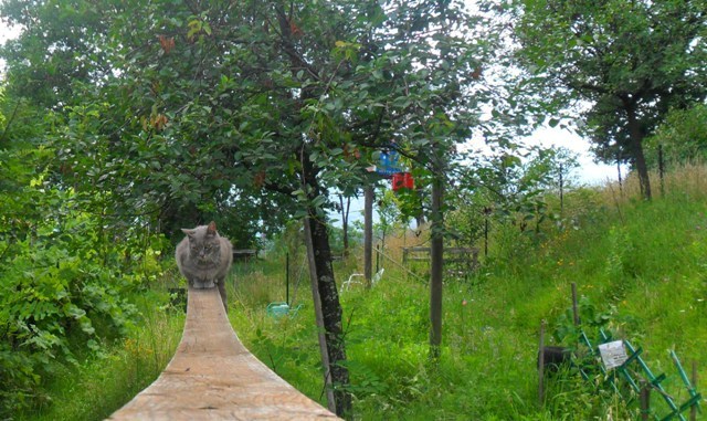 They both like walking up and down the planks perched above the beds. They walk very graciously to one end, sit, look around and then after a while get up and walk back to the other end. This plank is not big enough for the both of us I thought, but to my surprise each cat has their favourite end which luckily doesn’t coincide.