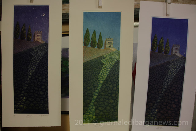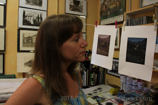 Back in 2005 we ran the following text in an article about one of the students working in the Studio of Colour Etching run by Swietlan Kraczyna here in Barga Vecchia – “The Studio of Colour Etching run by Swietlan Kraczyna opened its door this week to a group of students, mainly from the states, who will be working over the next three weeks for an exhibition of their multi plate etchings to be held at the end of their course. A welcome return to Barga for Maya Hardin, who was on the course last year as one of the students, but who this year is one of tutors. A “sneak preview” in Aristo’s this week of some of her work done in New York showed graphically just how far she has been pushing the multiplate printing process in the intervening 12 months. It will be interesting to see what images of Barga she comes up with this year…. watch this space ”