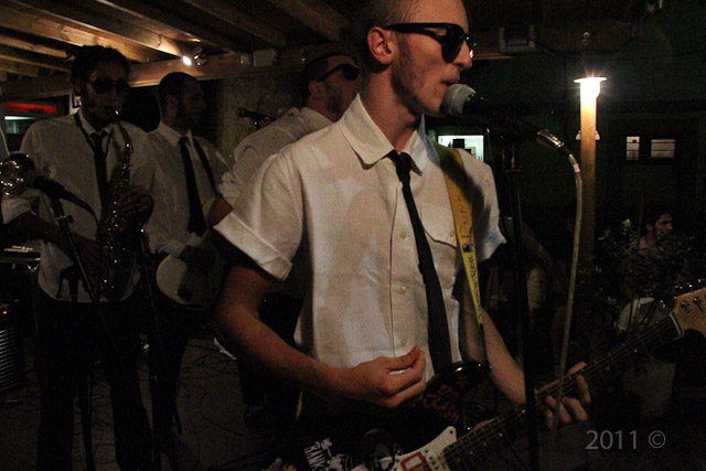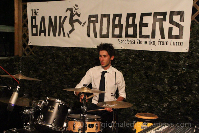 Ma la vera rivelazione sono stati i Bank Robbers, giovanissimo ed energetico gruppo ska di Lucca. Venti anni forse l’età media degli otto componenti nati come gruppo appena un anno fa, ed hanno già al loro attivo numerosi concerti in giro per l’Italia ed un disco in uscita per settembre.Brani inediti, partecipazione di “eminenze” dello ska come il bassista degli Statuto e i cantanti di Los Fastidios e No Relax sono gli ingredienti del loro primo lavoro prodotto da Anfibio records.Carichissimi, divertenti, coinvolgenti, “Bestia” (voce), Nino e il conte Fraska (chitarra), lo Spadaccino (basso), Ste (batteria), Luca (tromba), France (sassofono), Rico (trombone) uniti dalla passione per questo genere, hanno deciso di mettere insieme The Bank Robbers proprio dopo un concerto degli Statuto, il primo gruppo italiano che nel 1983 ha portato lo ska a casa nostra. Nati insomma sotto una buona stella, e davvero promettono bene.