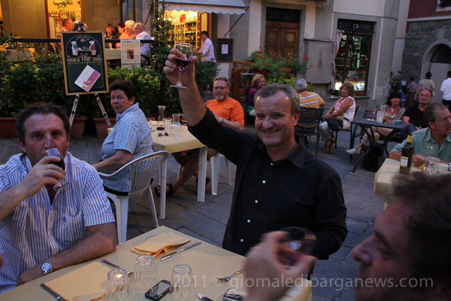 In Piazza Angelio this evening there was an added party feel to the concert of the T-Jays as one of the Lake Angels was celebrating a birthday.