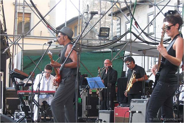Two of Barga’s finest musicians were playing an important “away match”this week when they were part of the line up for the closing night of the Pistoia Blues Festival. Alessandro Rizzardi – sax and Andrea Guzzoletti – trumpet were the brass section for the Gruntroots from Lucca who were the support band for the star of the show – Lou Reed.