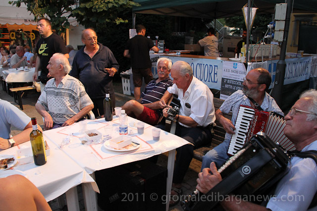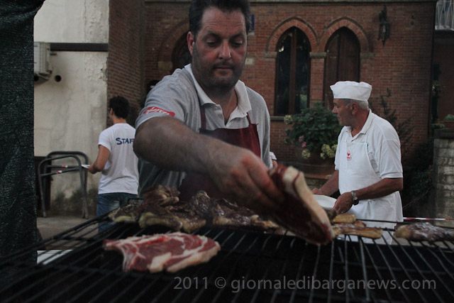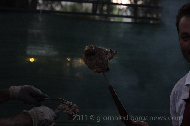 The 2nd Annual Beefsteak under the Stars event took place in Barga Giardino this evening organised by the sports group A.S.D. Sacro Cuore and the Macelleria Angelini. Live music was supplied by some of Barga’s finest traditional musicians who kept the large crowds seated at the tables filling the streets amused and entertained.