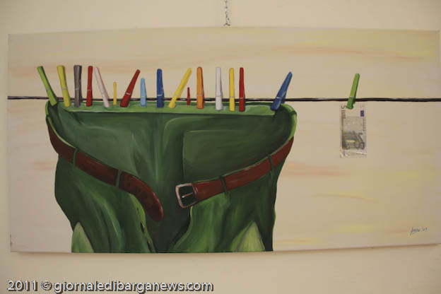 I quadri che rimarranno esposti alla Galleria comunale di via di Borgo racchiudono una grande varietà di stili e di messaggi, attraversando temi a volte seri, a volte faceti, e lui stesso ammette che non c’è un filo che lega tutte quante le tele; è piuttosto un percorso temporale quello che si trova esposto, con tutte le variazioni che Fabio ha volutamente sperimentato per trovare un suo stile.