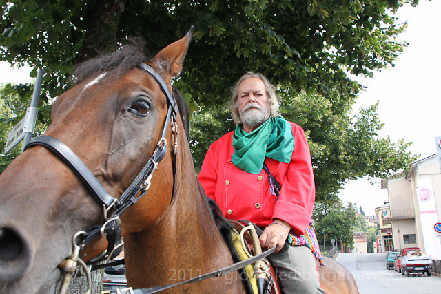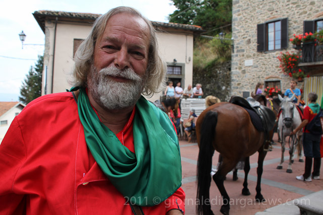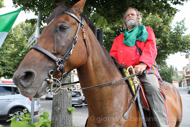 With the mounted figure of Garibaldi, complete with sword leading the way with three other horses, the walkers left Barga Vecchia to make their way up the old mule track to Sommocolonia where later on in the afternoon they laid a wreath for all those fallen in war.