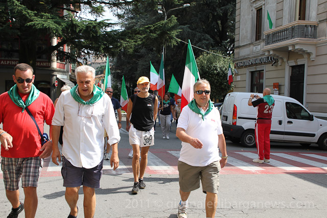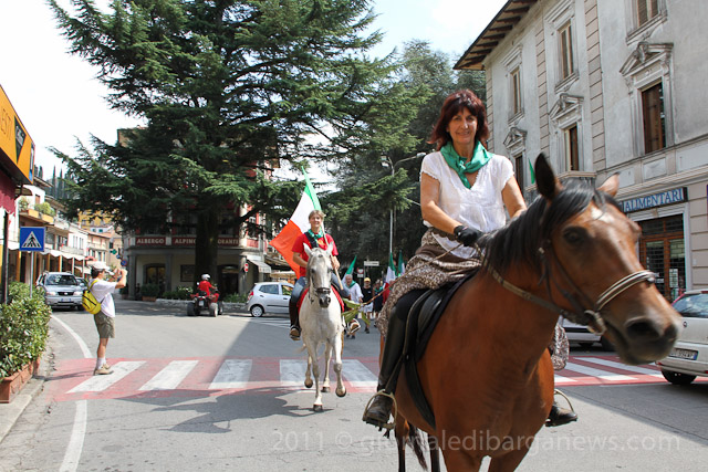 Partenza alle ore 15,30 dal piazzale Matteotti; alla testa dei numerosi partecipanti un Giuseppe Garibaldi in montura da generale, seguito da Anita, dal fido Bixio e da tutta una fila di garibaldini e garibaldine per festeggiare popolarmente il 150° dell’Unità d’Italia, proprio nell’idea e come facevano i nostri bisnonni risorgimentali, con una bella scampagnata da terminarsi in un brindisi all’ombra dell’amato tricolore inneggiando alle fortune dell’Italia.