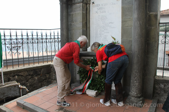 A Sommocolonia, sfilando per il paese, il corteo ha raggiunto il piazzale della chiesa, dove alla lapide dei caduti delle due guerre mondiali hanno deposto una corona d’alloro in omaggio a tutti i caduti. Qui ha tenuto la commemorazione ufficiale l’assessore provinciale Mario Regoli, introdotto dal presidente onorario della Valdilago Giorgio Selvatici.