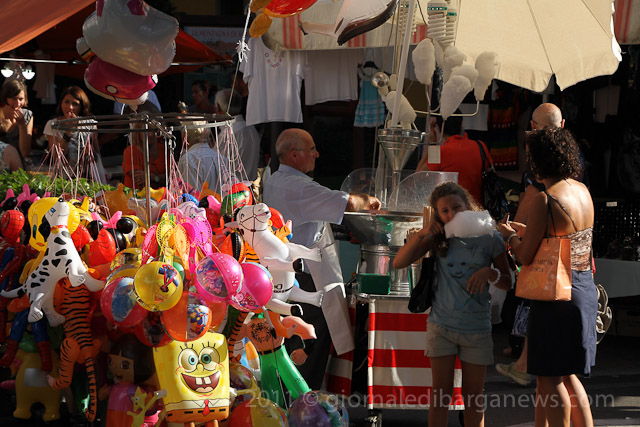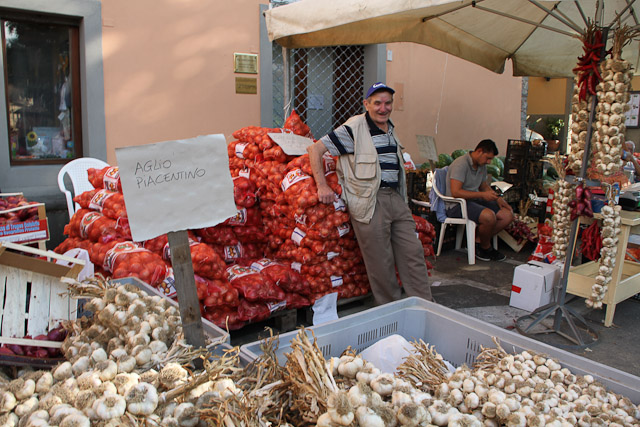 Checking through the archives of giornaledibarganews, we find the following text from a decade ago: The annual San Rocco fair brings thousands of people flooding in to Barga. One of the attractions is the street market with hundreds of stalls lining the streets of Barga selling everything from the traditional San Rocco goods such as melons, onions, garlic, sweets, pots and pans to the more exotic articles such as small green iguanas, African drums, silk kimonos and Chinese medicines.There is such a huge amount of things on display that the shopping binge has to take place over 2 days to get everything in. Local people take their knives and scissors to be sharpened by Umberto the Arrotino (article here) and stock up for the coming winter with onions and garlic.