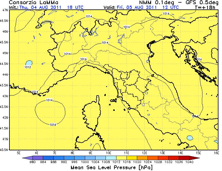 Venerdì 5 agosto: cielo sereno in mattinata con aumento delle nubi cumuliformi, sopratutto in appennino, con locali brevi rovesci o temporali non esclusi. Miglioramento in serata. Temperature senza variazioni di rilievo.