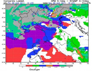 Sabato 6 agosto: mattina con cielo sereno, nubi in aumento al pomeriggio a partire da ovest. Temperature massime intorno ai 30-31 gradi, minime in aumento intorno ai 17-19 gradi.