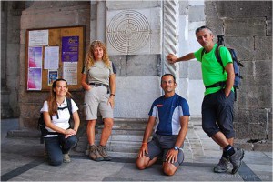 Nel tratto lucchese i due testimonial sono stati affiancati da Andrea Benvenuti e dalle guide di Ecoland Emilio Bertoncini e Serena Scalici anch’essi guide ambientali affiliate ad AIGAE. Il 23 di settembre, durante la giornata di pausa, le due guide hanno visitato Lucca sulle tracce dei pellegrini francigeni. E’ seguito l’incontro col Direttore dell’APT Icilio Disperati, la coordinatrice toscana AIGAE Antonella Poli e il consigliere provinciale Luciano Bracciali. L’occasione è stata propizia per confrontarsi sulle criticità del percorso della Via Francigena in provincia di Lucca e sulle possibili varianti per renderlo più accattivante.
