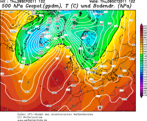 Per circa ancora una settimana il copione sarà il solito che tutti ben conosciamo poi il tempo dovrebbe cambiare con una sciabolata fredda dal nord Europa (vedi foto) che ci farà piombare di colpo in autunno provocando un netto abbassamento delle temperature.