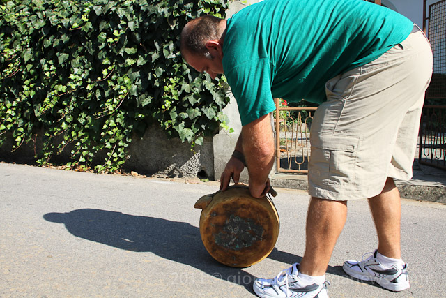 For the spectators the sport of Tiro della Forma is not without its dangers as a missed timed throw or a badly deflected fast moving cheese can cause quite severe injuries. Luckily in the narrow streets of Filecchio there were marshals not just guiding the competitors but also making sure that any spectators were out on the danger zone but still it paid to be alert that afternoon.