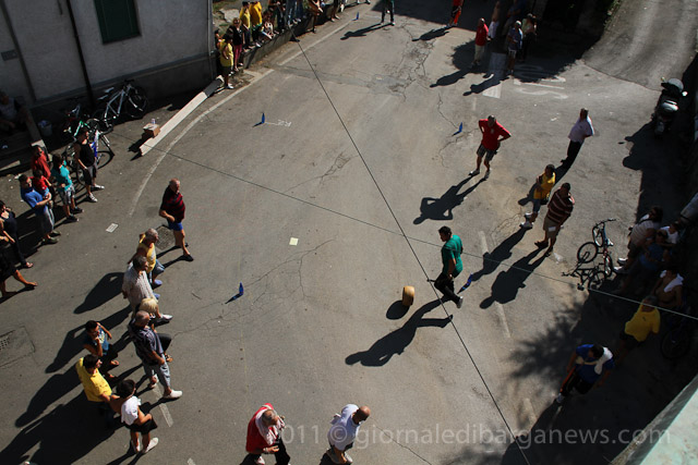 As part of the final events (article here) for this years annual sagra della polenta e uccelli, now in its 43rd year, the organisers set up the 1st Filecchio Cheese Rolling competition – Tiro della Forma