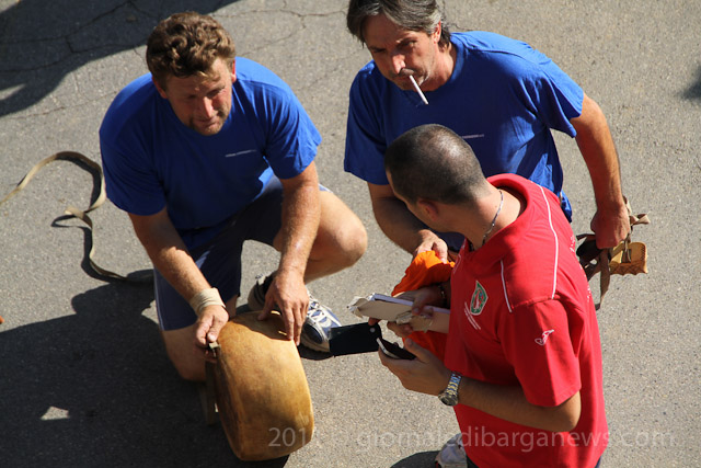2. Poiché le forme di formaggio (pecorino, asiago, parmigiano ecc.) sono create con i pesi e misure notevolmente diverse, le gare vengono suddivise per categorie (leggera fino a kg 1,500, media leggera fino a kg 3, media fino a kg 6,500, pesante fino a kg 16 e massima oltre kg 25) secondo il peso, nell’ambito di ciascuna categoria debbono essere scelte forme uguali che dopo ogni gioco vengono scambiate tra i contendenti: