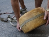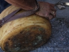 Cheese throwers wrap a long strap around the cheese and attach the free end of the strap to their wrist. There’s a run-up and a jump, launching the cheese and using the leather strap as it unwinds to ‘whip’ it and give it maximum momentum.
