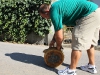 I lanciatori di formaggio avvolgono una lunga cinghia intorno alla forma, collegando l’estremità libera della cinghia al loro polso. Dopo una rincorsa ed un salto finale lanciano la forma utilizzando la fune che alla fine viene usata quasi come una frusta per dare slancio massimo alla spinta.