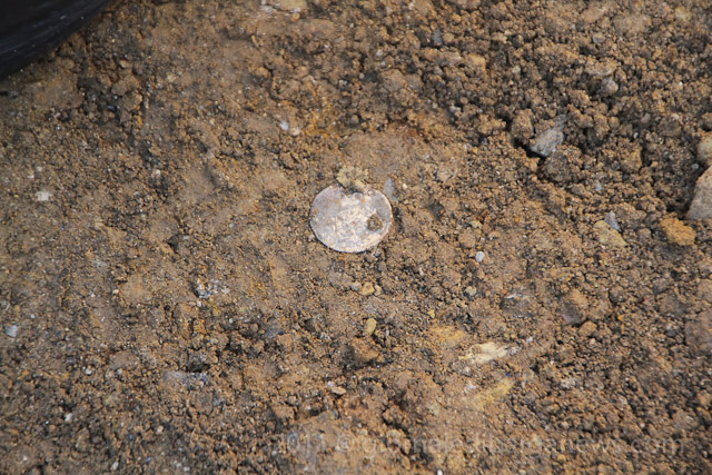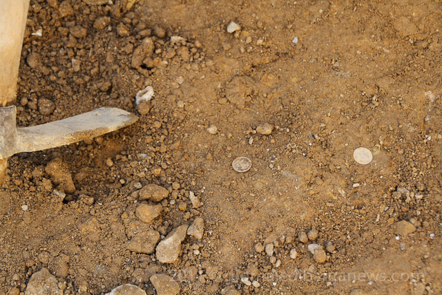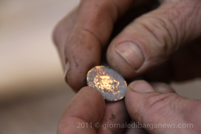 Nella terra che si trova sotto le pietre, due operai della ditta Giacchini hanno rinvenuto una moneta dorata e successivamente ne sono state trovate altre due di identica fattura. A fare il primo ritrovamento è stato Fiorello Giacchini, uno dei dipendenti della ditta e subito dopo la scoperta avevamo con lui registrato questa intervista: