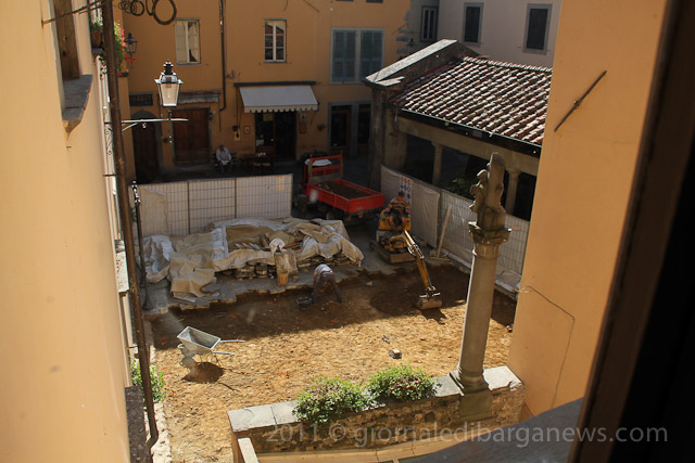 Vestiges of a turbulent passage in Italian history may have come to light on Monday (September 26), in the form of three silver coins unearthed beneath the venerable pavimenti of Piazza Salvo Salvi. How they made their way to Barga, and were eventually covered by paving stones, is unknown.