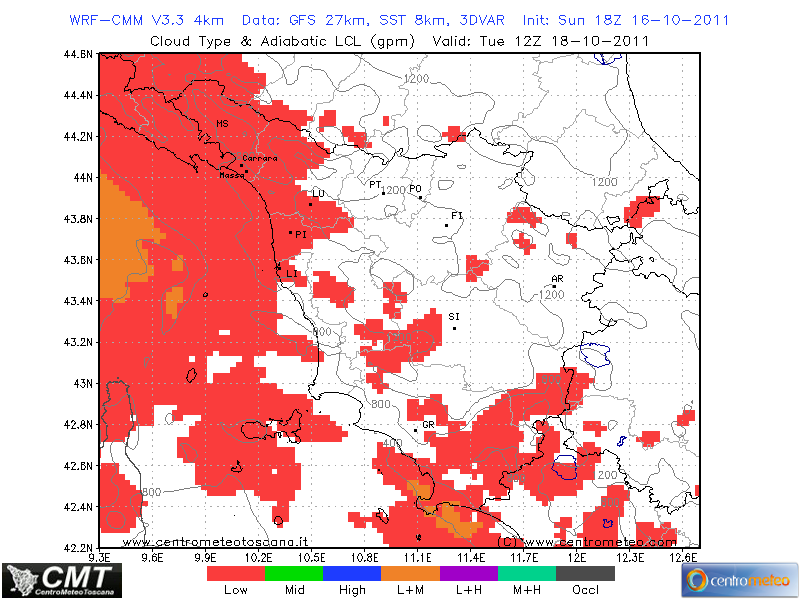 Martedì 18 ottobre: mattinata con cielo sereno ed ancora piuttosto freddo. Dal primo pomeriggio nubi in aumento da ovest (grazie agli amici del CentrometeoToscana per l’utilizzo del loro Lam) con qualche debole pioggia nella notte su mercoledì. Temperature in rialzo, sopratutto nei valori minimi, per effetto dei venti da sud ovest.