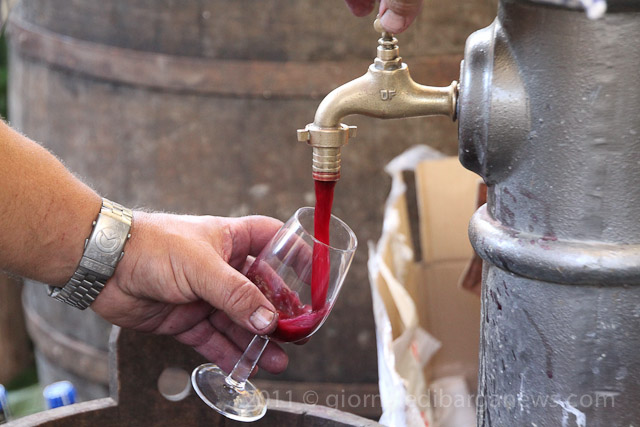 If the experience in the Comune of Fosciandora is anything to go by today, then poetic moments are still there to be found. Just take a look at the main image for this article. The water fountain in the street in the middle of Riana. Turn the tap and out comes …… gushing bright, sharp red wine. As one of the first time visitors to the festa pointed out this afternoon, ” it could only happen in a fable or a fairytale”.