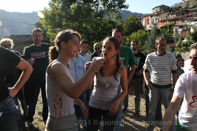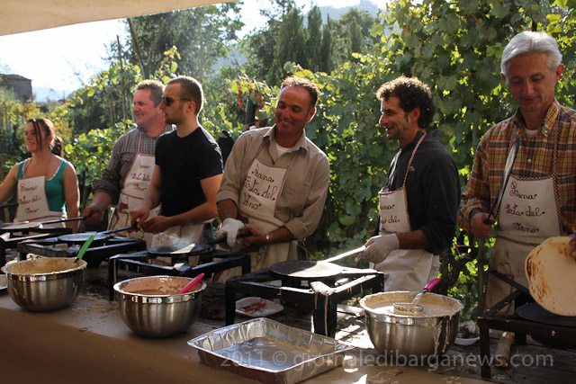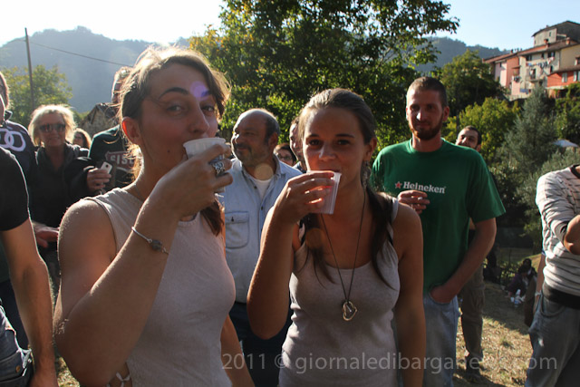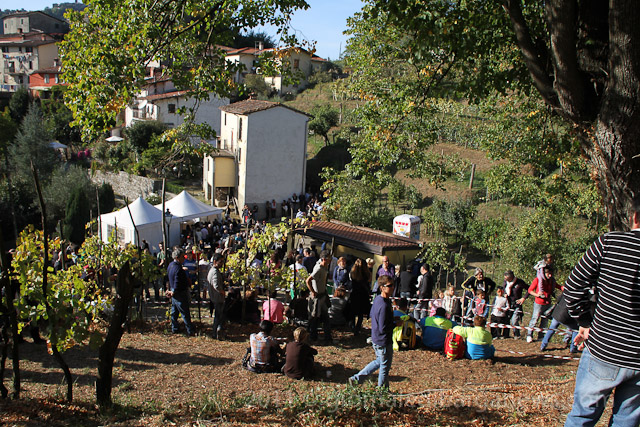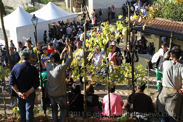 The tiny hamlet of Riana in the Comune of Fosciandora was overun with visitors this afternoon for the annual Wine Festa held each year at the start of the autumn. The organisers of the event and the Mayor of Fosciandora, Moreno Lunardi both quoted the incredible figure of more than 2000 visitors to the tiny village during the day. Now that may sound like a huge exaggeration for the amount of people who would want to visit a small wine festival in a tiny village tucked away up in the mountains of Garfagnana but judging by the huge crowds swirling through the narrow streets of Riana and also the lines of parked cars stretching back almost to the bottom of the valley, it’s probable that the figure of 2500 is far closer to the truth.