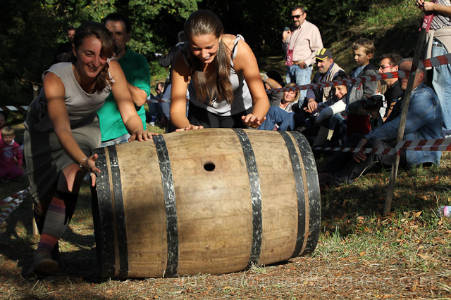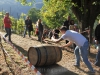 For the third year running contestants lined up to see who could roll the large ungainly ( and luckily, empty) wooden barrel up through the vineyard in the shortest time possible.