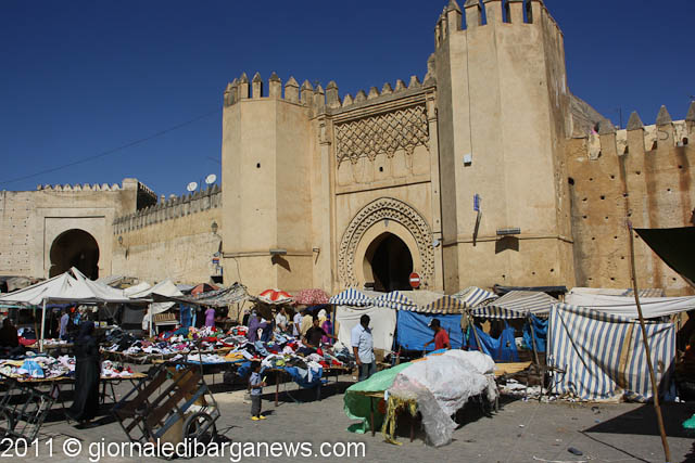 Ore 14,30. Le procedure del visto sono molto più snelle di una volta e tutto è meglio organizzato. In poco tempo usciamo dall’aeroporto di Fès. Noi avevamo ad attenderci Alì, del riad che abbiamo scelto per la notte a Fès, ma in ogni caso esiste l’opzione economica dei bus che vi porteranno a poche centinaia di metri dalla principale porta di accesso della medina con pochi dirham. Se prendete un taxi quasi sicuramente vi toccherà contrattare non poco sul prezzo. 100 dirham se siete veramente in gamba; in seconda istanza 120, se non avete voglia di fare battaglia per un giorno interno, possono bastare.
