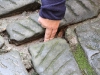 La pietre della pavimentazione, nell’area più problematica, non sono cementate e questo ha fatto sì che, a causa della tanta pioggia unita alla pendenza innaturale assunta ormai dal piano, il torrente di acqua formatosi dilavasse e si infiltrasse proprio nell’area più delicata.