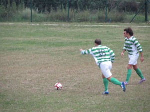 I Gatti partono bene sfiorando il vantaggio dopo pochi minuti con Puccetti (Gatto Puccio), che dal limite calcia con potenza ma la palla finisce di poco alta. La partita prosegue su buoni ritmi e piena di capovolgimenti di fronte, con le due squadre che si tengono testa. Anche il Fiano ha la sua buona occasione per passare in vantaggio, con un colpo di testa ravvicinato ma Canal (Gatto Hugo) con un grande intervento devia la palla in calcio d’angolo. Al 27’ i Gatti passano in vantaggio, bell’azione in velocità sulla destra, palla in mezzo all’area dove l’evergreen Fabio Bomber Martinelli con una splendida rovesciata realizza il gol del provvisorio vantaggio. I Gatti hanno poi l’occasione, cinque minuti dopo, di realizzare il 2 a 0, ma Baigioni M. (Gatto Nacche) arriva in ritardo su un traversone dalla destra, dopo aver lasciato indietro tutti gli avversari senza poterlo trasformare in goal. Come spesso accade nel calcio capovolgimento di fronte con il Fiano che trova il pareggio, proprio ad un minuto dalla fine del primo tempo. Cross dalla sinistra, indecisione della difesa bianco verde e tocco sotto misura di un giocatore del Fiano lasciato completamente solo.