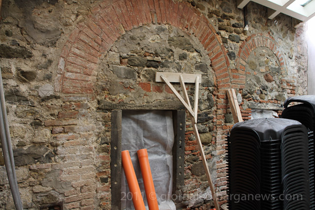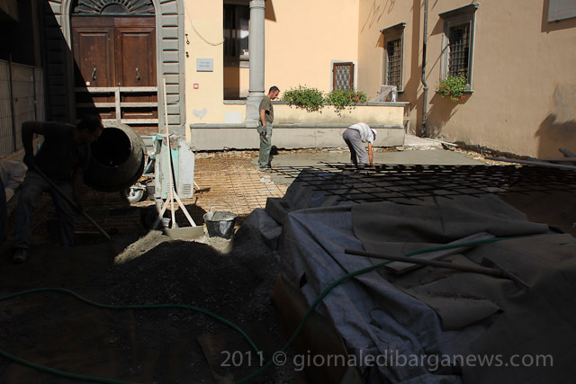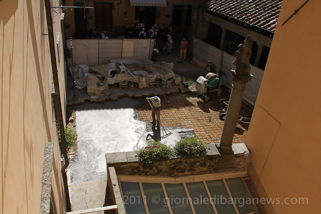 Two of the rooms in the new museum are directly under the piazza and have been constantly damaged by damp seeping into their ceilings and walls from the piazza above. This has meant that the stones in the piazza have had to be lifted and a new waterproof layer put down before once again the stones can be put back in their original position.