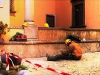 The sound of stone masons working in the piazza during 2003