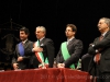 Then it was back onto the train, which puffed and clanked its way out of the station along the tracks which snaked along the bottom of the valley following the river Serchio up to Castelnuovo Garfagnana where once again the passengers alighted to the sound of the brass band playing and marched down the road in the pouring rain to their next port of call at the unveiling of a plaque dedicated to the Garibaldino from Castelnuovo – Regola Gaddi. Short speeches were made and then as the rain increased its drum beat staccato on the assembled umbrellas, everybody then moved very quickly into the dry of the Teatro Alfieri where first time for some final speeches.