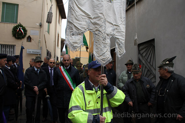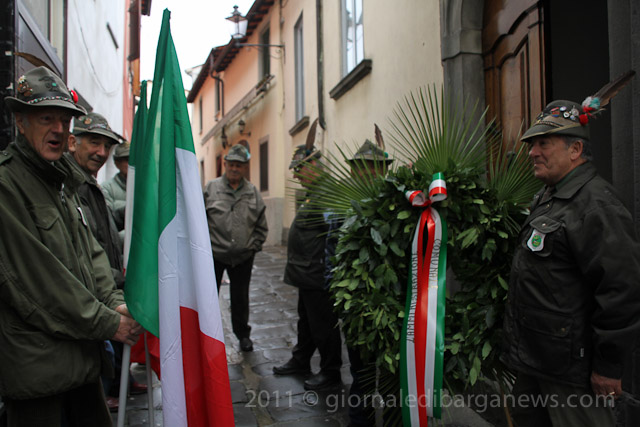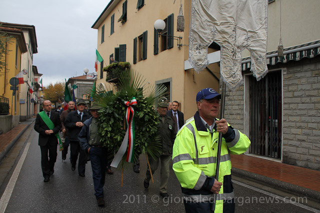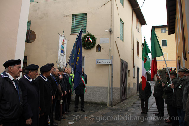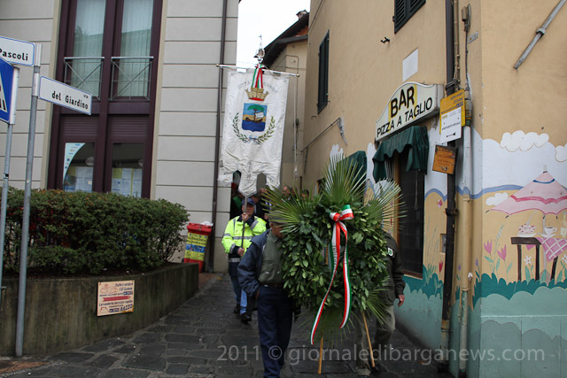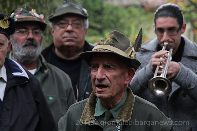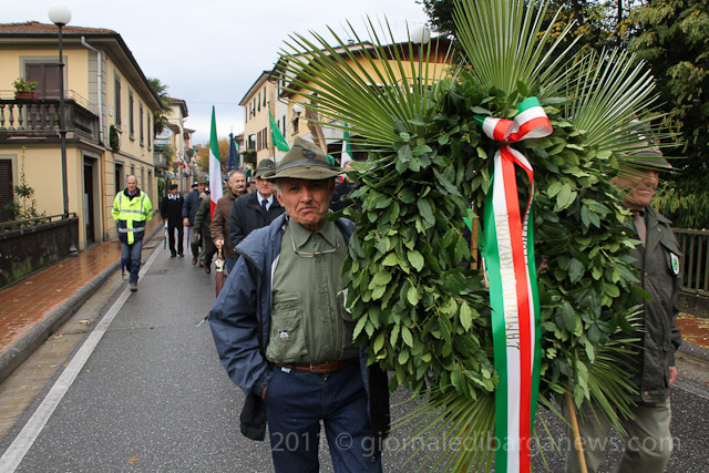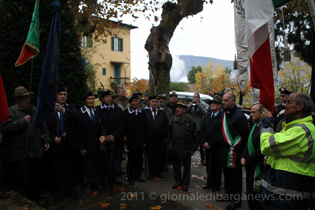 This morning the Mayor of Barga, Marco Bonini led a procession through the town to commemorate the 4th of November along with the Associazione nazionale Alpini and the Associazione nazionale dei Mariani d’Italia. They laid a wreath at the plaques to commemorate Leo Giuliani and Fratelli Lombardini in Barga Giardino before moving on to the Monumento ai Caduti where a final wreath was laid to the sound of the last post played on a solitary trumpet.