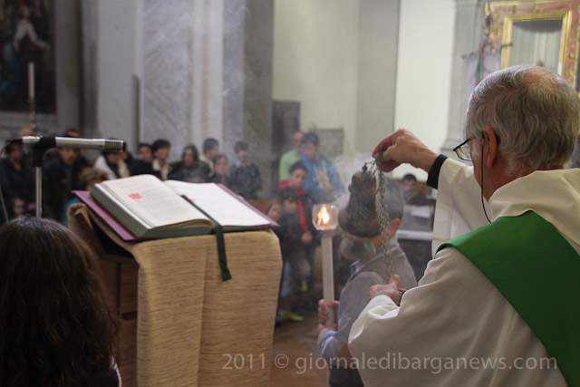 The last port of call was the S.S Annunziata church right here in Barga Vecchia which re-opened its doors this morning after being shut for the past two years when falling masonry and plaster made renovation work of vital importance both to the structure itself and of course the congregation below.