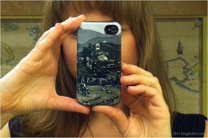 The new case came today and I am quite impressed. It fits the phone well and is a good quality image even with my less than wonderful photo. E’ come l’uomo morto mi guarda dall’occhio del iPhone camera. 🙂 – Maya Hardin