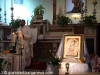 Lo scultore architetto Giuliano LEONARDI rappresentò la Vergine in atteggiamento raccolto mentre, alla luce di una lampada legge in un libro le parole profetiche dell’Apocalisse: “Sii fedele sino alla morte” (Apoc.2,10).