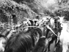 Ci ritroviamo in un’abitazione isolata nell’alta Valle della Corsonna. Iniziamo a scendere per un sentiero che porta al Rio di Bacina, attraversiamo il torrente e poi giù lungo la strada comunale che passa dalla Mocchia. Lungo il tragitto le capre mangiano delle frasche che trovano ai bordi, ma senza mai fermarsi. Poco prima del ponte di Catagnana imbocchiamo il sentiero delle Rupine per giungere a Barga, il gregge si allunga e una capra rimane più indietro. Un breve passaggio lungo il residenziale e sonnacchioso viale di Canteo, e dopo aver girato intorno alla chiesa della Fornacetta, la capra che si era attardata si accascia a bordo strada. E’ proprio sfinita e non ne vuole sapere di rialzarsi, stava poco bene già da alcuni giorni, così Giordano se la carica sulle spalle e ripartiamo. Attraversiamo i campi e i boschi di Latriani, sino a giungere alla sua casa, sulla provinciale tra Barga e Fornaci.