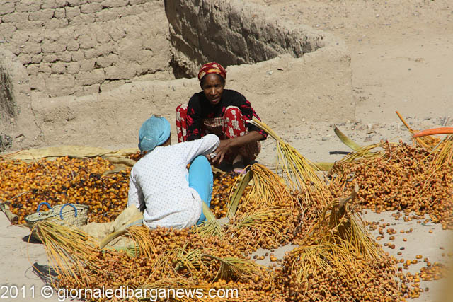 Ottobre è il mese della raccolta dei datteri ed abbiamo trovato la gente del posto, donne e bambini soprattutto, impegnati sui tetti delle case a far essiccare i dolcissimi datteri della zona che in parte vengono utilizzati per ricavare una specie di pasta, dolcissima e di colore scuro… provate a spalmarla sul pane imburrato la mattina a colazione…