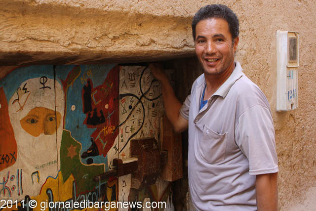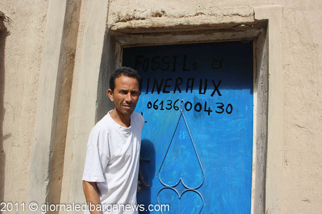 Noi abbiamo incontrato il simpatico Youssef che ci ha condotti anche allo studio dell’artista locale che se non sbaglio (ma forse sì) si chiama Mohammed. Youssef lo trovate subito all’interno della porta della Ksar. Vedrete subito la porta azzurra del suo negozio di minerali e fossili che in queste terre abbondano (occhio alle imitazioni… tra quelli che vedrete ovunque spesso si nascondono solo, soprattutto quando si tratta di fossili, imitazioni ricavate da stampi, in resina. Imitati alla perfezione comunque).