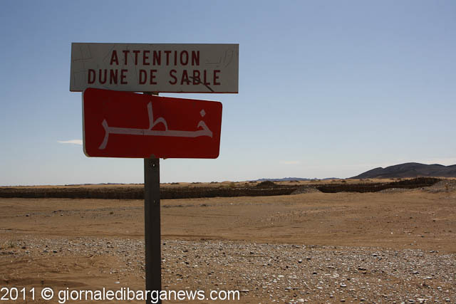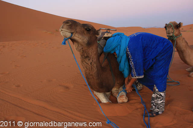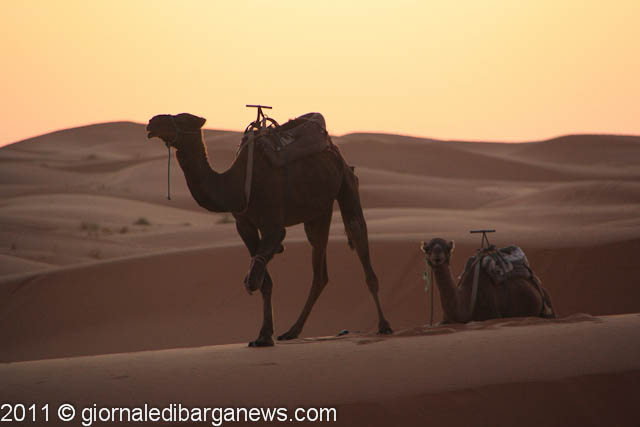 Da Tinerhir a qui ci vogliono circa un paio d’ore in un viaggio che attraversa hammada (deserti di sassi) interminabili. Le prime piccole dune si trovano molto prima di giungere a Erfoud e poi a Rissani con i dromedari a fare da stupenda cornice, ma per il deserto vero bisogna aspettare ancora.