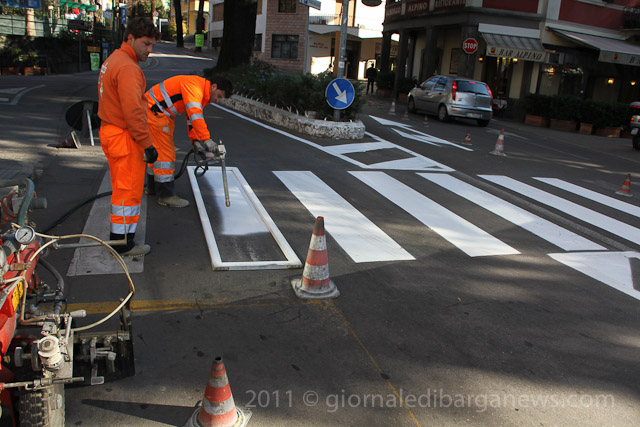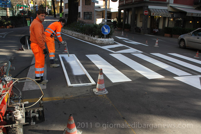 Now it could well be that the extremes of climatic conditions which occur in this area make painted road signs less able to withstand those huge jumps in temperatures and snow ploughs dragging over them during the winter must wear them down but as some commentators in Barga Giardino watching the workmen repainting the stop signs mentioned, we do not have a really huge amount of traffic in this area on our roads, so why do the signs have to be repainted almost every year?
