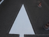 Painted symbols, such as turn-lane arrows or lane markers, are applied manually using stencilsRoad surface marking is any kind of device or material that is used on a road surface in order to convey official information. They can also be applied in other facilities used by vehicles to mark parking spaces or designate areas for other uses.
